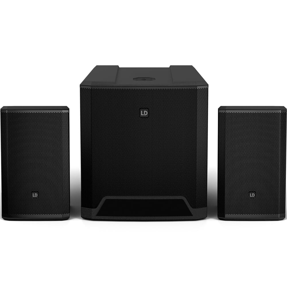 - Powered 2.1 PA with 15" subwoofer and two 8" satellites